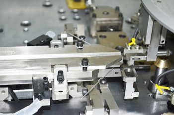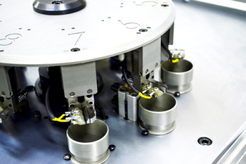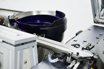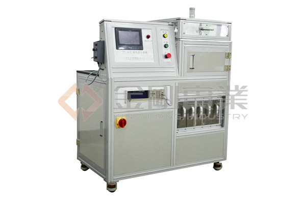 被測試元件通過振動盤振動給料,進入無振動直線送料系統(tǒng),經(jīng)入料夾傳送至分割器圓盤測試夾,到達測試工位時,元件引腳經(jīng)測試電極與測試觸點接觸接入測試電路。元器件經(jīng)過測試後,再由圓盤傳送至相應(yīng)的分箱落料口,氣缸驅(qū)動開夾頂桿,被測試器件良品經(jīng)落料管道進入設(shè)定的分料箱,不良元件落入廢料箱。